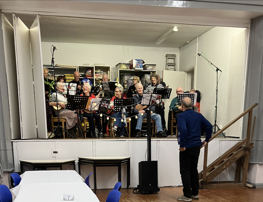 Getting ready for our first Christmas gig at Windy Nook History Society Christmas party. We went down well as our songs are mostly ancient artefacts